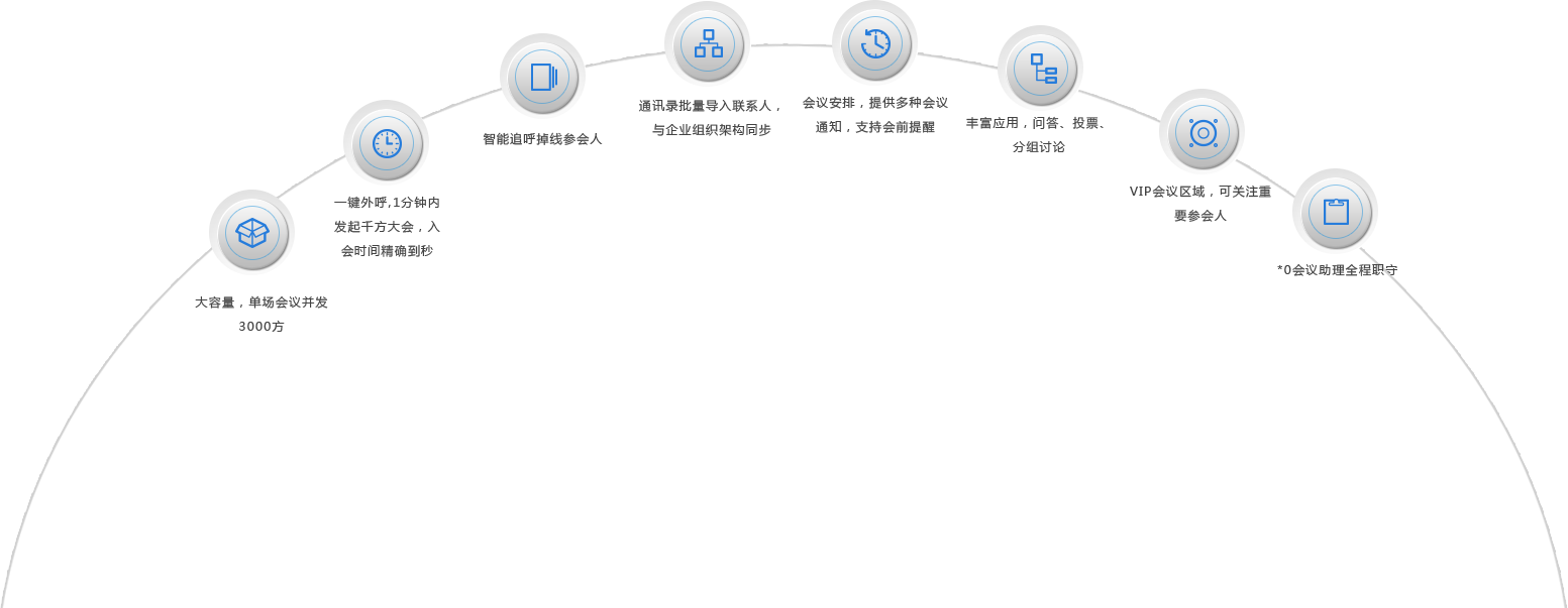 专业的会议技术服务团队,500座席呼叫中心,提供7*24在线*0双语支持服务, 满足您在会议中的各种需求,保证会议语音质量和参会人安全接入。