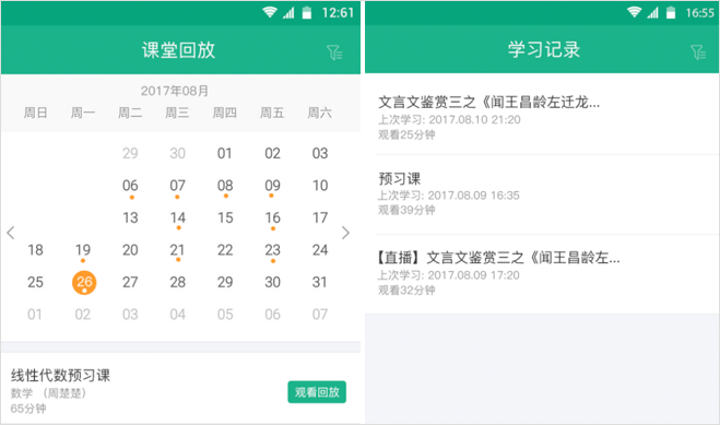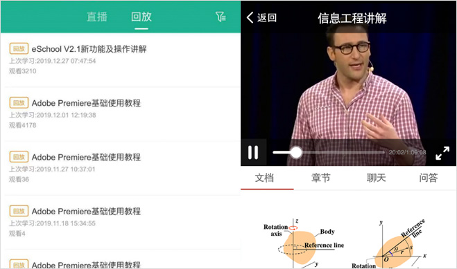 名师课堂:直播结合录播,让更多学生受惠;网络自习室:老师直播答疑,助教配合播放录播和插播视频,提升自习效果;