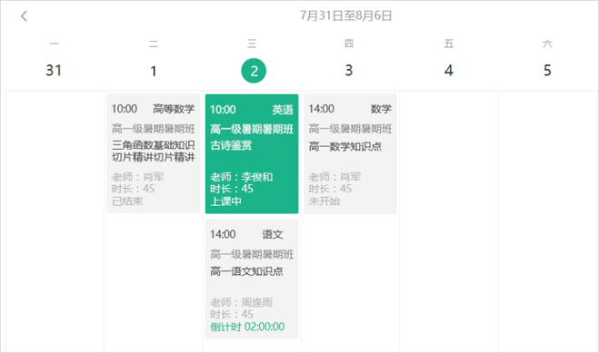 独立账号登陆、自由选课;电脑、手机、APP网校、多平台支持,让学生在家也能直播听课,与老师实时在线互动交流