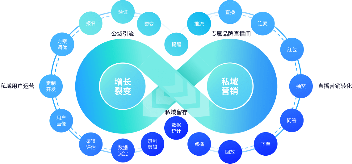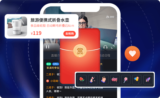 为报名观众推送已预约直播,提升观看率;抽奖/投票/虚拟场景/连麦等,强化用户参与感