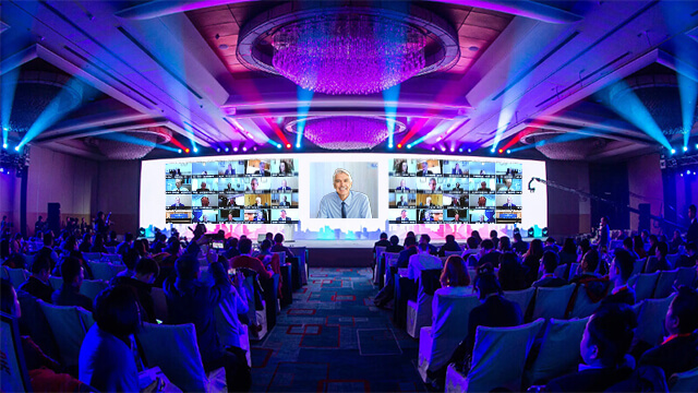 借助暖场视频、直播引导页、自定义品牌logo、年会专属直播界面等营造年会火热氛围。