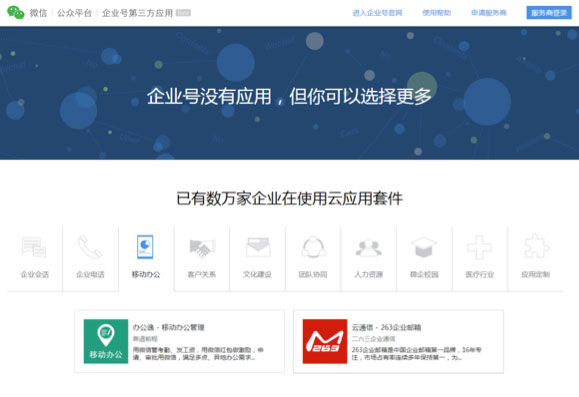 近日,笔者发现微信企业号官网在移动办公板块里重点推荐了263企业邮箱,用户只要在微信企业号中绑定263企业邮箱,就可以随时收发邮件,如果有新邮件到达,也会弹出消息提示,让大家在使用微信的同时也可以移动办公。经笔者试用,与微信绑定的腾讯企业邮箱类似,目前微信企业号还不支持邮件附件的查看。
