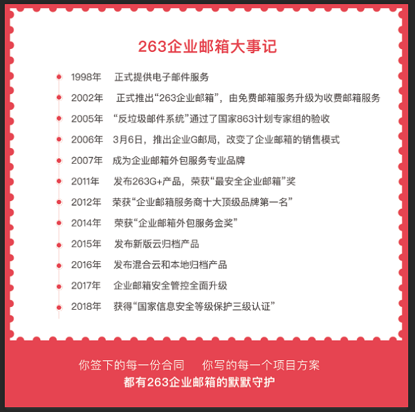 从1998年263正式提供电子邮件业务到今天,263企业邮箱已经走过了整整20年。