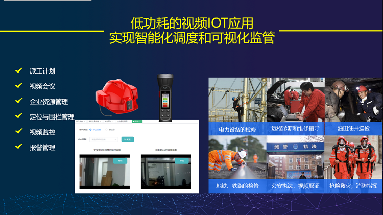 263的视频技术已经被合作伙伴应用于IoT设备。我们在低功耗的设备中嵌入视频应用,例如把视频技术嵌入到头盔、手电,将原本不智能的设备智能化,转而变成了一个有通信能力、处理能力的低功耗的智能设备,实现检测、报告、诊断一体化的高效视频巡检流程。并且,当物联网具备视频能力以后,便可以应用到如巡检的远程监控,协同调度指挥,安监执法等场景中,目前在安全生产领域已得到广泛应用。
