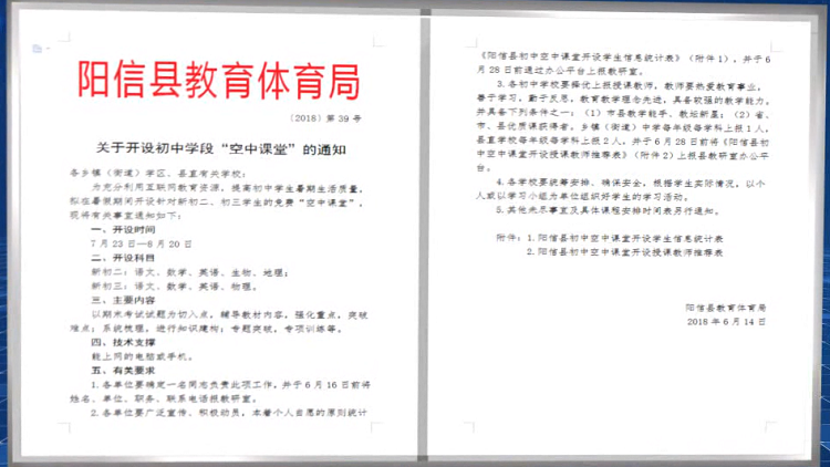 2018年上半年,经过充分调研,阳信县教体局党委做出在暑假开展空中课堂的决定。