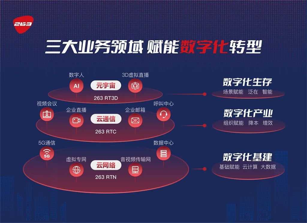 263将元宇宙业务命名为263云境,致力于在全新的虚拟化、数字化的空间中全力探索数字技术的应用和服务方案,主要围绕二大核心业务展开,希望帮助各行业客户降低元宇宙构建门槛,提升虚实交互体验。