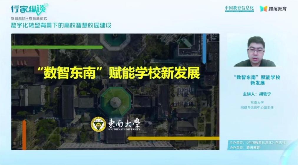 据胡轶宁介绍,东南大学的高校信息化基础设施分为“东大网、东大云、东大智、东大盾”四大板块。通过“东大网”,实现了全校“一张网”;通过“东大云”,实现纯国产化本地云平台;通过“东大盾”,搭建起管理与技术并重的校园网络安全体系;通过“东大智”,构建起“移动App+一网通办”的智慧校园服务,实现了高校全域业务覆盖。胡轶宁表示,促进核心业务的发展是高校信息化建设的重要目标,对于高校,人才培养和科研创新便是“核心业务”。