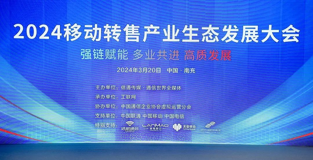 3月20日,由信通传媒·通信世界全媒体主办,工联网承办,中国通信企业协会虚拟运营分会协办的“2024移动转售产业生态发展大会”成功举办。本次大会以“强链赋能 多业共进 高质发展”为主题,广邀监管部门、行业协会、研究机构、基础运营商、虚拟运营商及产业链生态企业等诸多行业代表齐聚一堂,推动移动转售产业在技术创新、业务模式、市场拓展等方面探寻全新能力,推进数字经济高质量发展。