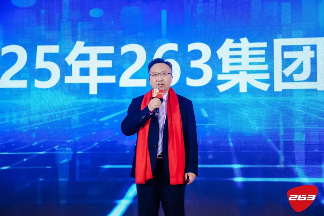 此次年会星光熠熠,我们极为荣幸地邀请到了 263 集团创始人李小龙先生,以及始终心系 263 集团发展的前任总裁芦兵先生。同时,263 集团副总裁兼国际事业部总经理忻卫敏先生、263 集团副总裁兼企通事业部总经理许立东先生、263 集团网科事业部总经理赵捷先生、263 集团董事长助理刘江涛先生、263 集团副总裁兼财务部总监孟雪霞女士、263 集团董事会秘书李波先生等一众集团核心领导也悉数出席此次新春年会。