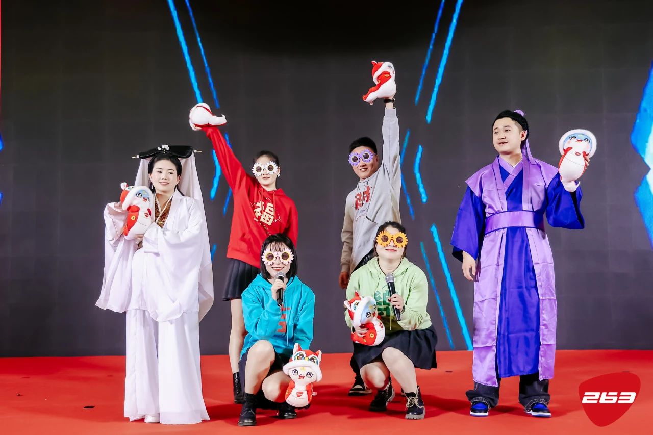 2024年,时值263持续发展的第27个年头,变革创新贯穿始终,“新价值” 追求矢志不渝。此次年会别出心裁,现场节目高潮迭起。年会现场小伙伴在舞台上尽情释放表演才华,奥斯卡般的演技尽情绽放。他们可以默默无闻,也可以朝气蓬勃;他们日常一本正经,晚会现场逗比搞笑……平日严谨认真的形象瞬间切换为舞台上的欢乐之星。最后,263 顶流男团豪情唱响《真心英雄》,激昂旋律将全场氛围推至巅峰。