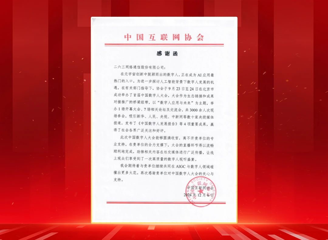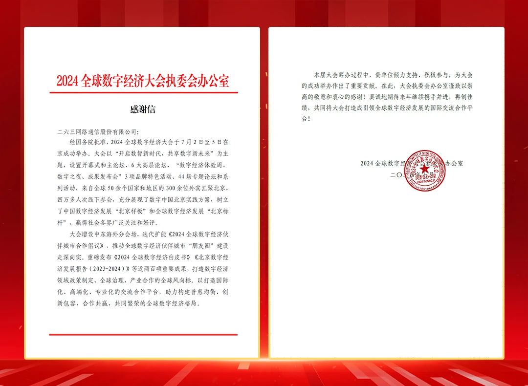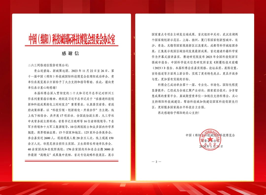 这一年,263集团在互联网通信服务领域稳步前行,致力于为客户持续创造新价值,并凭借卓越的技术实力与专业用心的服务,收获了众多客户的高度认可与广泛赞誉。这些认可与赞誉化作一封封“沉甸甸”的感谢信,成为263集团坚定探索的力量。