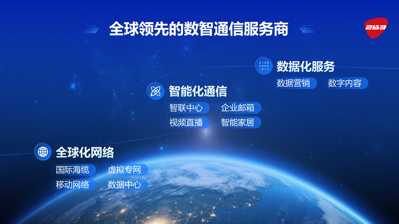 从技术突破到场景创新,从中国根基到全球布局,263集团始终以“连接赋能”为核心,致力于以数智通信驱动数字经济高质量发展。