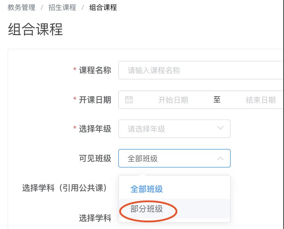 03:组合课可见功能按需选择课程可见班级,方便又高效