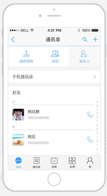 支持通讯录、日程服务,将企业中的“人”紧密连接
