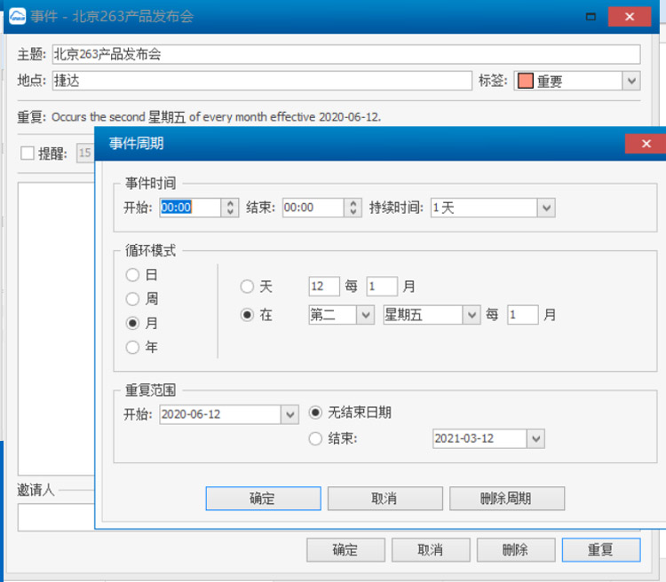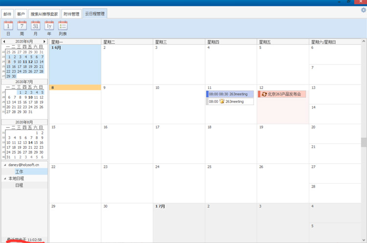 同步263云日程,事件显示方式可以按列表,日,周,月